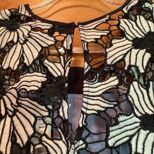 Romeo & Juliet Couture Lace Dress W/ B&W Design W/a Light Blue Underlay M NWT
