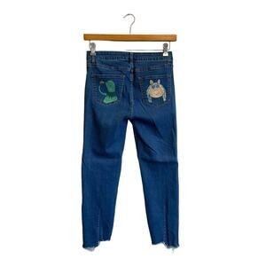 Details: Miss Piggy and Kermit the Frog The Muppets painted on skinny jeans mid-rise circle zipper raw hemline