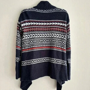 Romeo + Juliet Couture Nordic Print Sweater Cardigan, Navy Blue/White/Orange, M