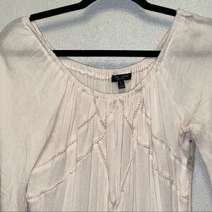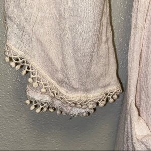 Off the shoulder is elastic. Bell sleeve has crochet detailing. Shorts are fully lined. Embroidery detailing on the front. The color is cream,Gorgeous for any occasion!