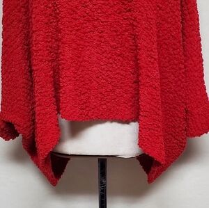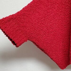 Bright chili red super soft chenille like popcorn knit in a half poncho and half sweater style.