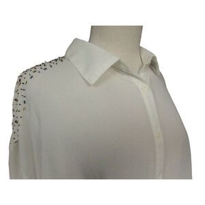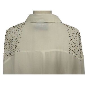 Romeo & Juliet Couture Semi Sheer Beaded Shoulders Hi-Lo Blouse Cream Roomy M