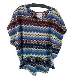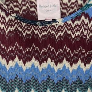 Romeo & Juliet Couture Short Sleeve Multicolor Metallic Chevron Knit Top Small