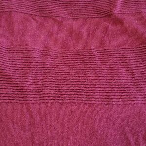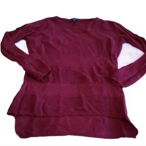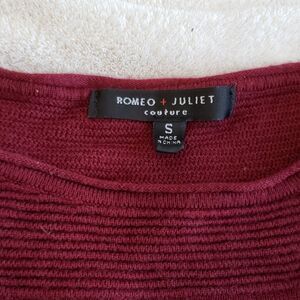 Burgundy Romeo & Juliet Couture sweater with striped texture, 3/4 length sleeves, size small.