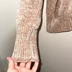 Romeo & Juliet Couture tan chenille sweater. In excellent condition! Crew neckline. Long sleeves with fitted cuffs. Soft chenille knitted material. Versatile tan/cream color. Size small.
