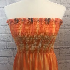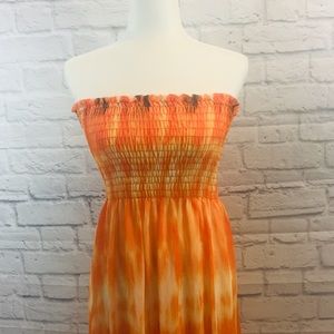 Romeo & Juliet Couture Orange Strapless Maxi Dress Small