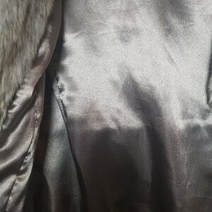 Romeo & Juliet Couture Wool Faux Fur Grey Vest Sz L. Faux Fur with ribbed side panels. 30% Wool and 70% Polyester. Faux Fur 80% Acrylic and 20% Polyester. Lining 100% Polyester. Ptp 19" and Length 24". Good pre-owned condition.