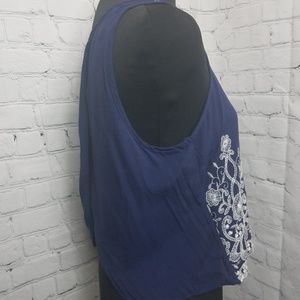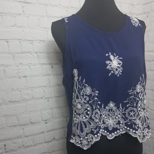 Super cute navy crop, lightweight with floral detail. A great addition for the summer.