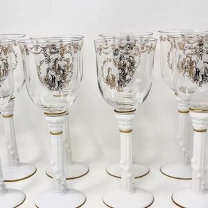 Romeo & Juliet Crystal & Porcelain Goblets Set 8 Austrian Vintage 22k Gold