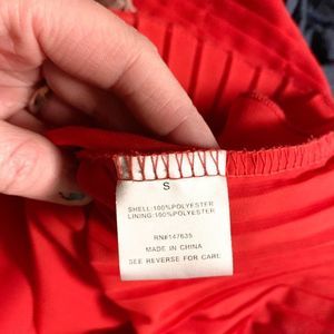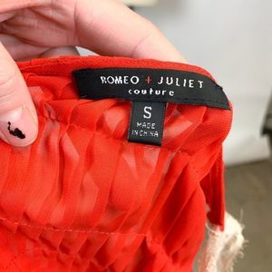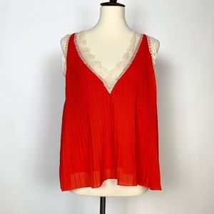 Romeo + Juliet Red Silky Pleated Lace Embellished Sleeveless Blouse