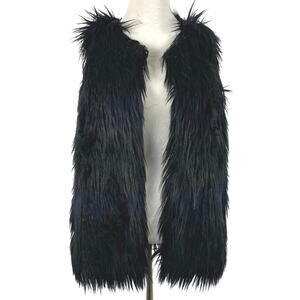Romeo & Juliet Women Sleeveless Fuzzy Faux Fur Vest Jacket Grunge Black Small