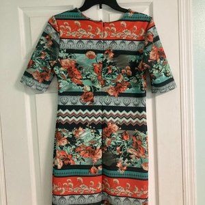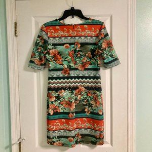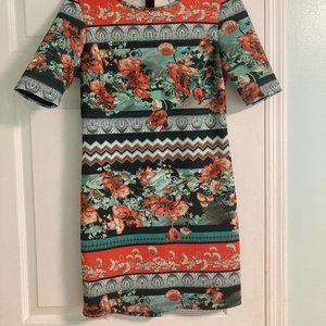 *Romeo and Juliet multi-patterned print mini shift dress with elbow length sleeves.