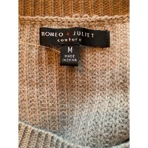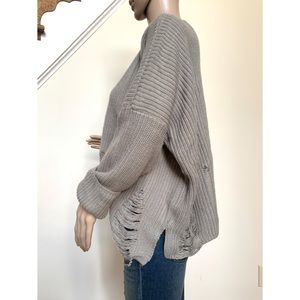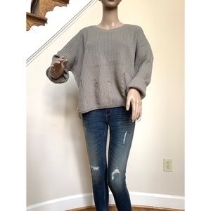 Chunky ribbed taupe slightly cropped fashion sweater. Trendy distressed look. 3/4 sleeves. Never worn and in new condition. Measurements on photos.