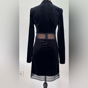 Black velvet mini dress by Romeo and Juliet with a crochet trim. Size medium. Good preowned condition.