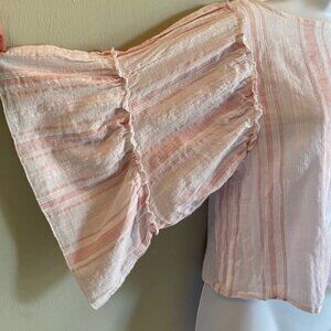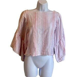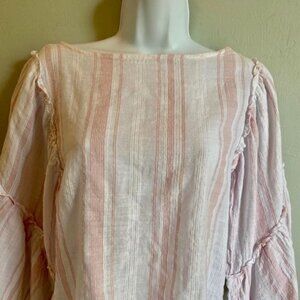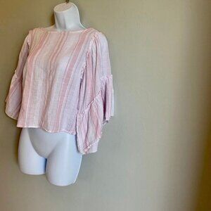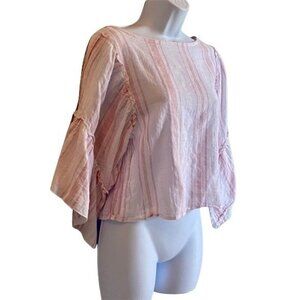 Romeo & Juliet Couture Pink and White Top. 100% Cotton. Size Medium with approximate measurements laying flat 18" length, 17" pit to pit, sleeves 14" from shoulder.