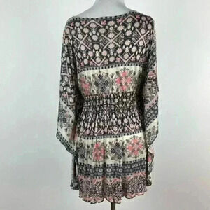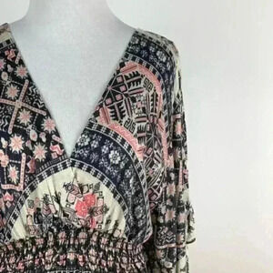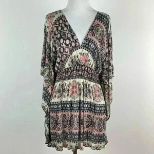 Romeo and Juliet Couture women’s top size M multicolored geometric babydoll boho v-neck