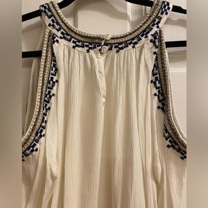 Cold shoulder. Long sleeve. Gorgeous beading around neckline. Flowy and flattering. Perfect condition.