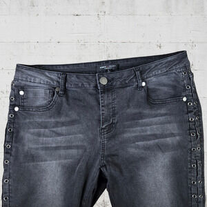 Romeo and Juliet Washed Black Eyelet Mid Rise Grunge Skinny Leg Jeans Size Large