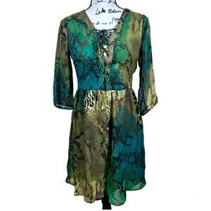 New Romeo and Juliet couture green snake print colorful dress sz S boho hippie retro