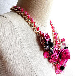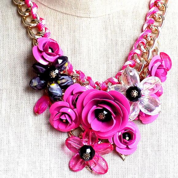 All you need is A Romeo and Roses a stunner of A Necklace for sure, hues of pink and flowers created from acrylic beads and it all comes together as if a florist created a bouquet around your neck 19'' in length with an extender chain