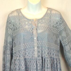 Romeo and Juliet heather blue baby doll lace mini dress sz M Boho Chic
