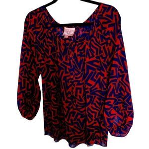 Romeo & Juliet Couture Blue and Red Blouse. 3/4 sleeves excellent condition. More details in pictures message for measurements.