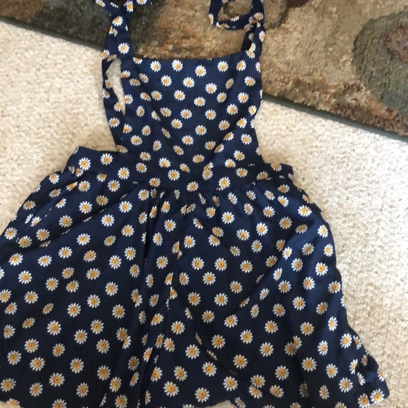 Navy blue daisy flowered pattern and has pockets