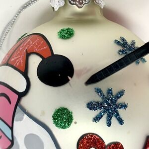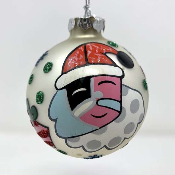 Used condition, some spots of discoloration and a little bit of paint missing on one of the Santa decorations. Please check photos. Very cool hand painted design!