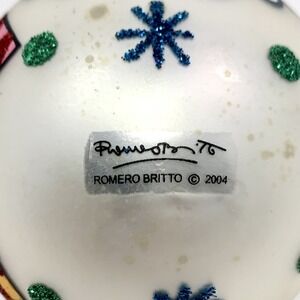 Romero Britto 2004 Christmas Santa & Presents Glass Ball Decorated Ornament