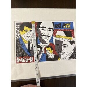 The product is a 6" x 9" portrait-oriented pop art print by artist Romero Britto titled "Rat Pack At Miami Beach." This original piece is signed by the artist and features a diptych design on paper material. Perfect for adding a unique and vibrant touch to any space, this matted print is a visually striking piece that would make a great addition to any art collection.