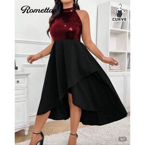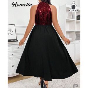 Rometta Plus Size Sequin Patchwork Asymmetric Hem Halter Dress Maxi Women Outfit