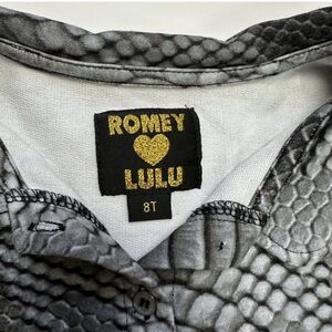 Size 8 #romeyloveslulu organic long sleeve collared snake skin print dress. Button half front Organic cotton EUC