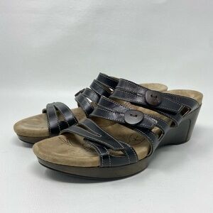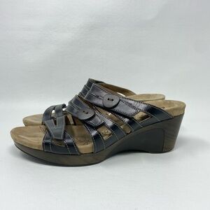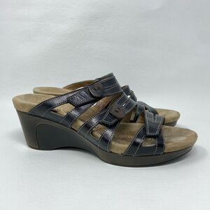 Romika Leather 3-Strap Adjustable Slide Wedge Sandal Shoes.