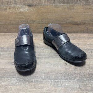 Romika Maddy Black/Pewter Leather Monk Strap Slip On Shoes Women's Size EU 40