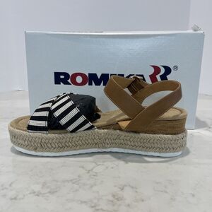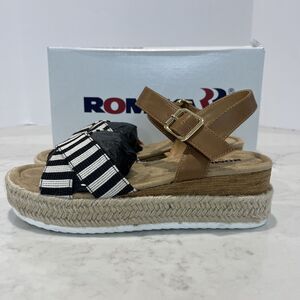 Romika NEW Women Madison Black Cream Striped Espadrille Sandals EU 37 US 6 - 6.5