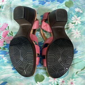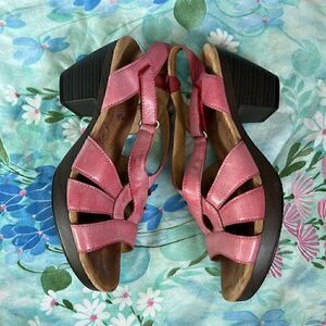 Really nice condition. The unwashed red leather velcros around the ankle. Soft footbeds and leather. Slight indents from toes. Soles are in great condition. No major flaws. Color is pretty true to photos it’s as unwashed red/pink ish color.