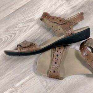 Romika Tahiti 03 Brown Leather Flower Cut Out Strap Sandals Womens Size 42 US 11