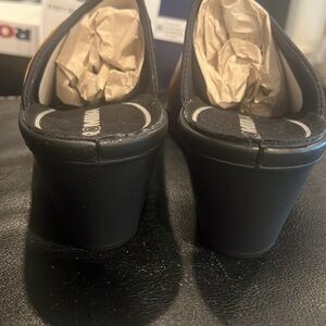 Step out in style with these chic brown leather mules. Perfect for any occasion.