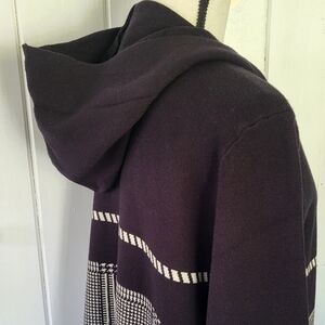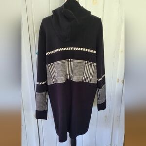Romimona Longline Hooded Herringbone Block Open Front Cardigan