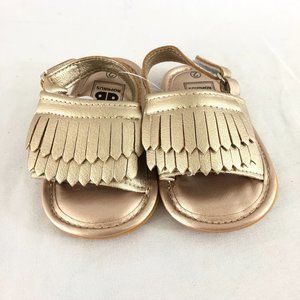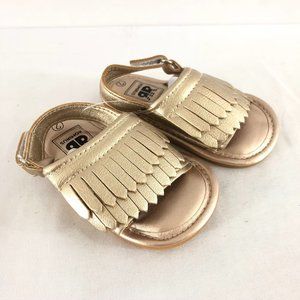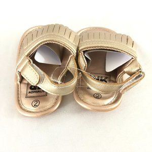 Romirus Baby Girls Sandals Fringe Faux Leather Open Toe Gold Size 2