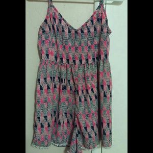 Pink/blue, tribaly romper, patterns, cute, easy to wear, zip back, flowy and comfy, worn twice