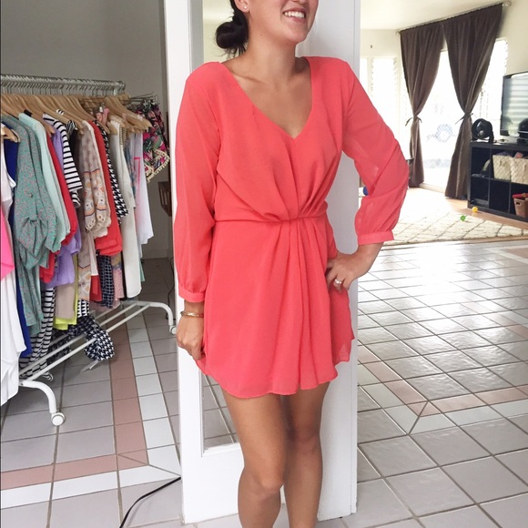 Coral 3/4 Sleeve Romper. 100% Polyester. Lightweight. Zipper in back. Loose fit around bottom of romper. Super comfy