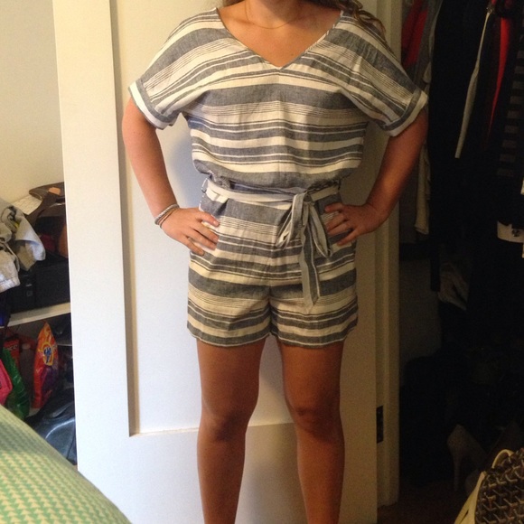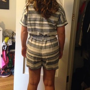 Cute romper, perfect for a hot summer day! Dress it up with strapped sandals or wear it with d'orsey flats around town!