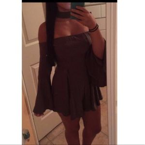 Olive green romper with connecting choker. Super cute. ****if you are on the taller side it may be too short and give bad camel toe lol**** but other than that it fits perfect and really cute and nothing wrong with it