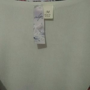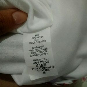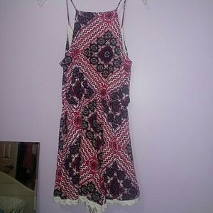 Pink , white , blue romper with no damage amd never worn . No adjustable straps . But pretty roomy for a medium . Whiye crotchet trim . Cinched waist and zipper on side