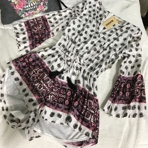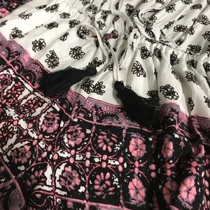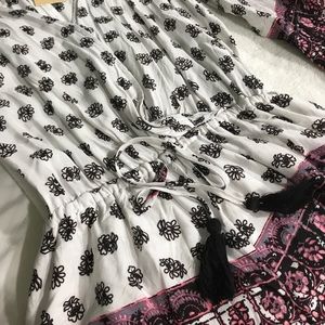 Printed romper, cinched waist with tassels. Bell sleeves, low cut but has a snap closure to give you the option of making it less revealing. Size medium/ AUS 10. Never worn with tags