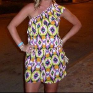 Colorful, one sleeves romper. Worn a hand full of times. Very light & perfect for summer or vacation!