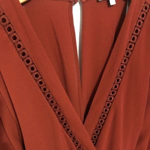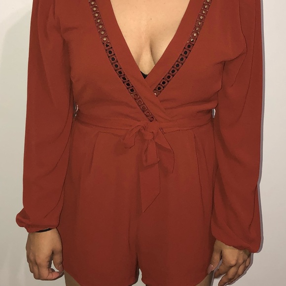 Romper short style burnt orange color v neck shape front and back never been wore