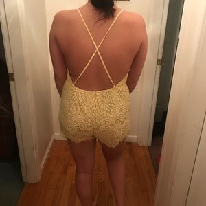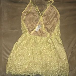 Never worn! tags still on. Lace material with Open back with cross over straps and v neck front- size large