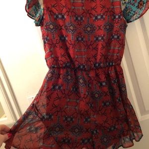 Super cute printed, flows out on sides. Just never wear it but really cute with leather jacket!